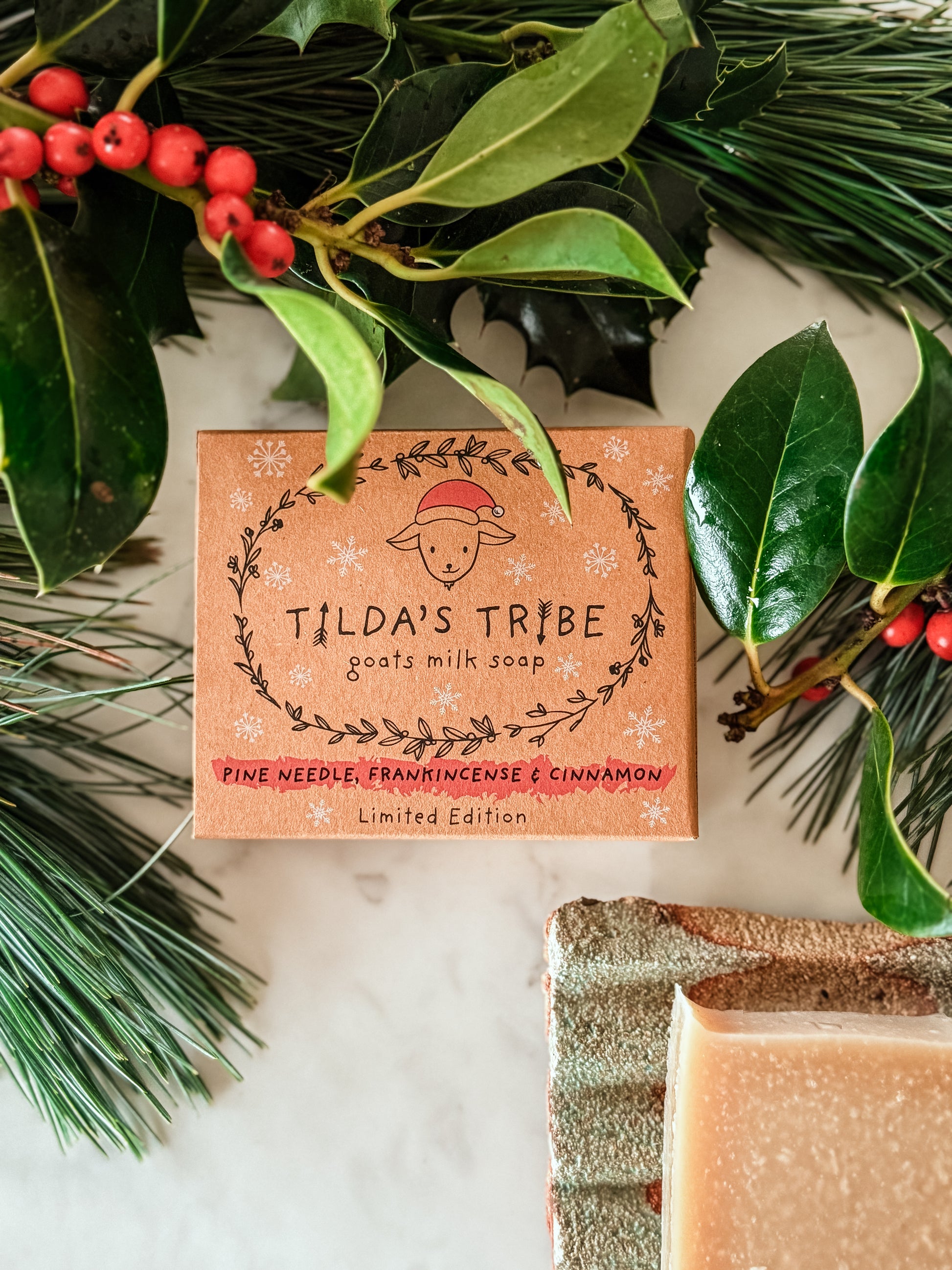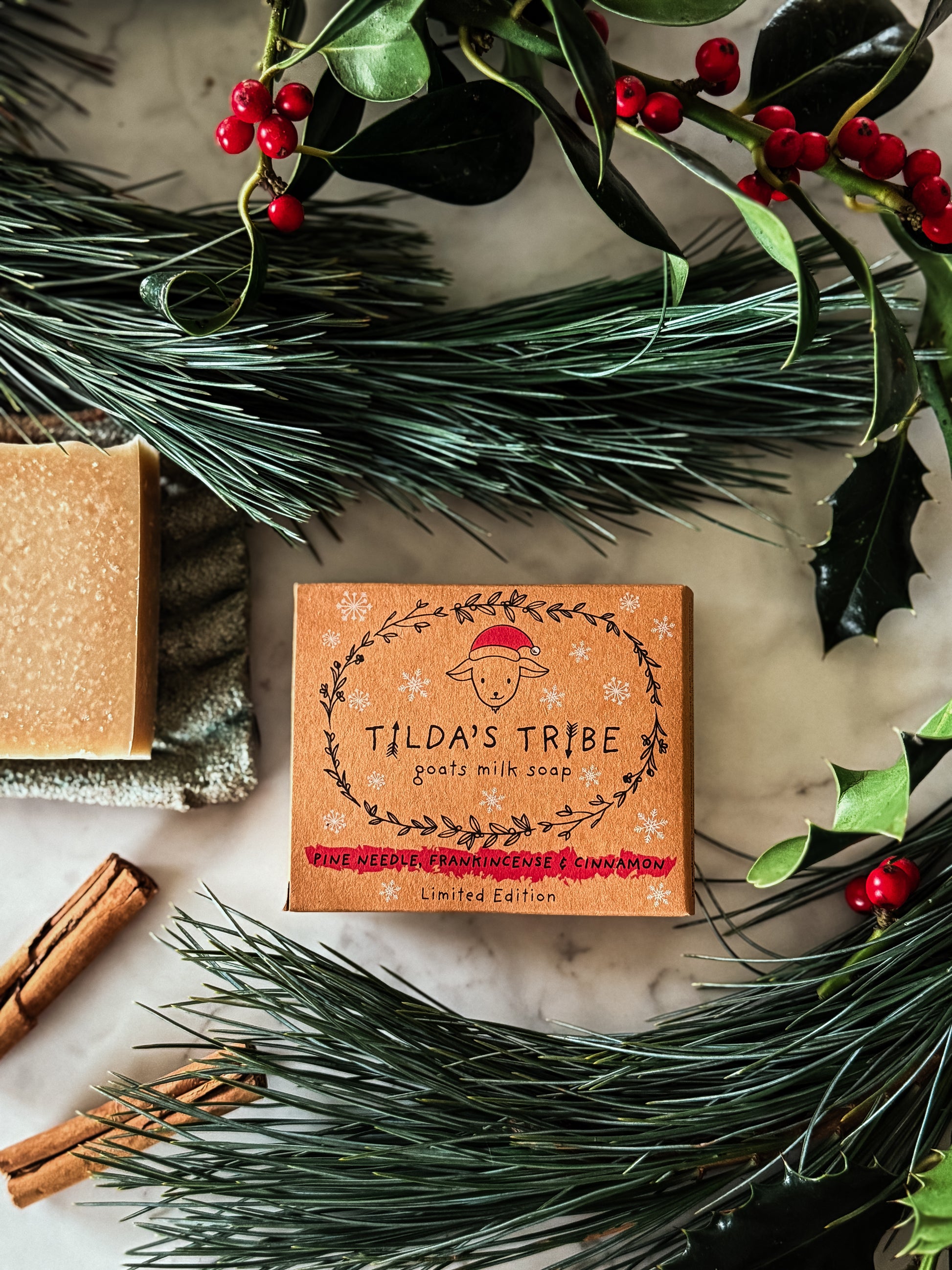 🎁 Limited Edition Christmas Goat’s Milk Soap – Pine Needle, Frankincense & Cinnamon 🎁